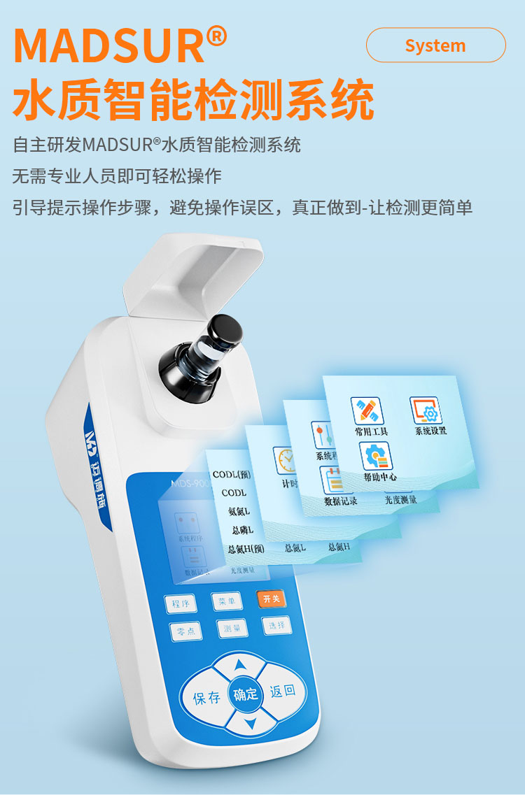 5、用戶還可以自行開(kāi)發(fā)用戶程序和試劑,以適應(yīng)不同場(chǎng)合不同水體狀況。